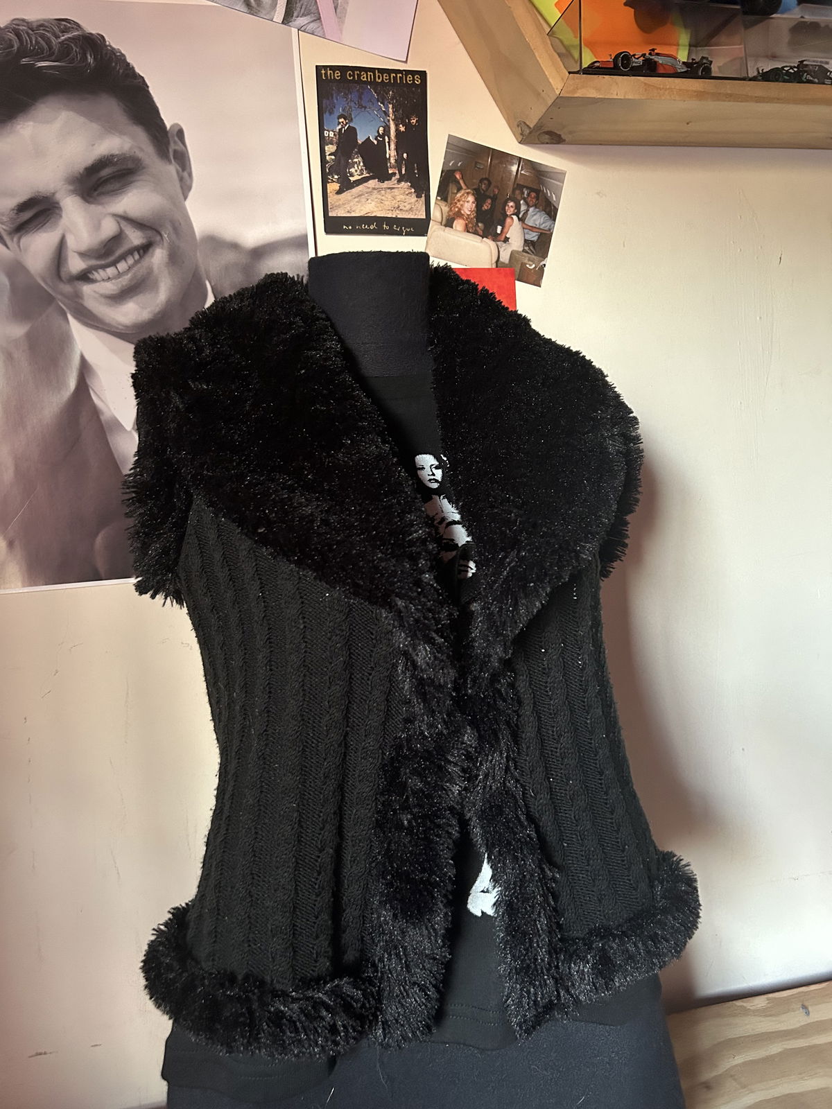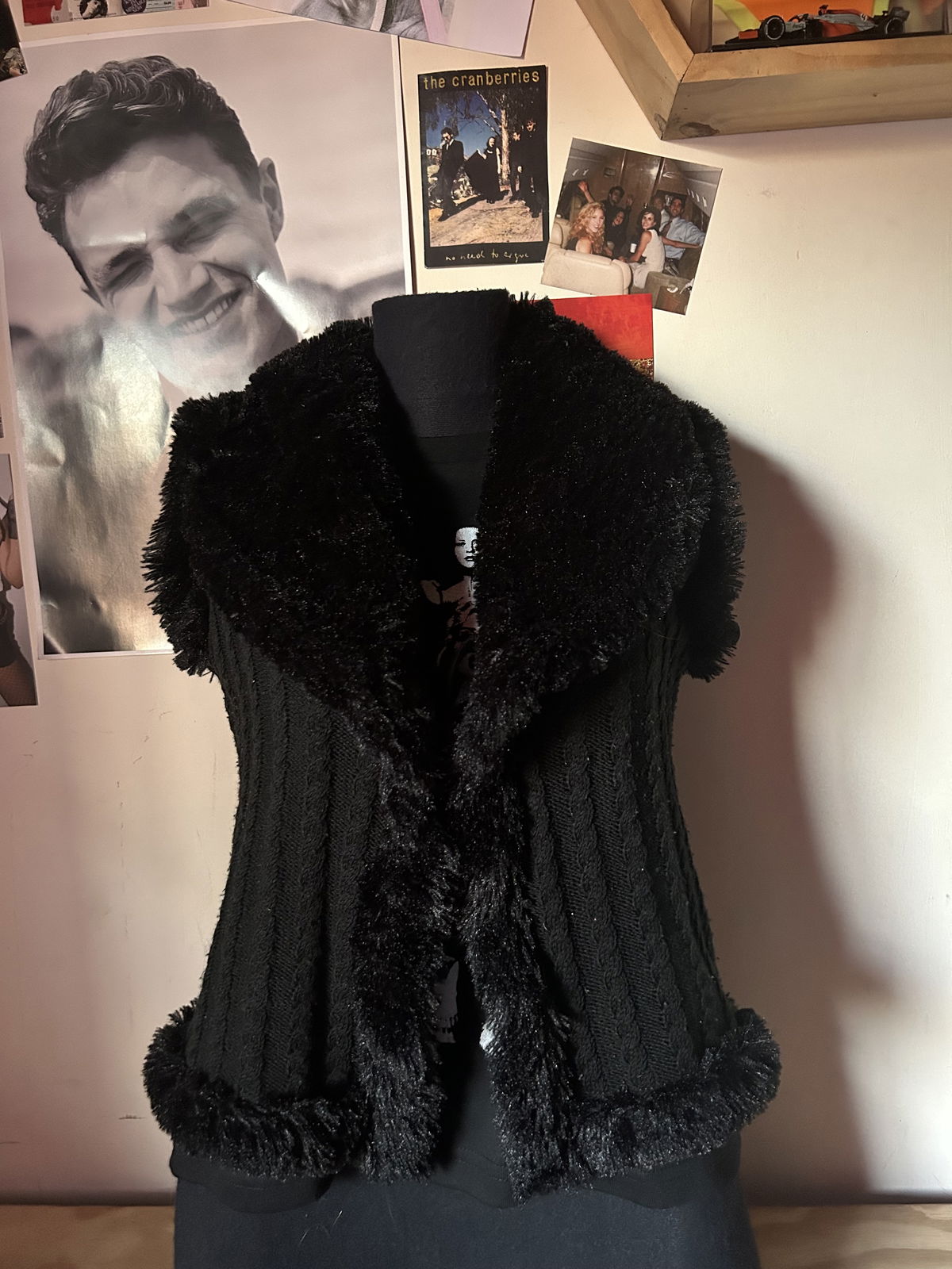 chaleco tejido con detalles en peluche. como nuevo, talle s